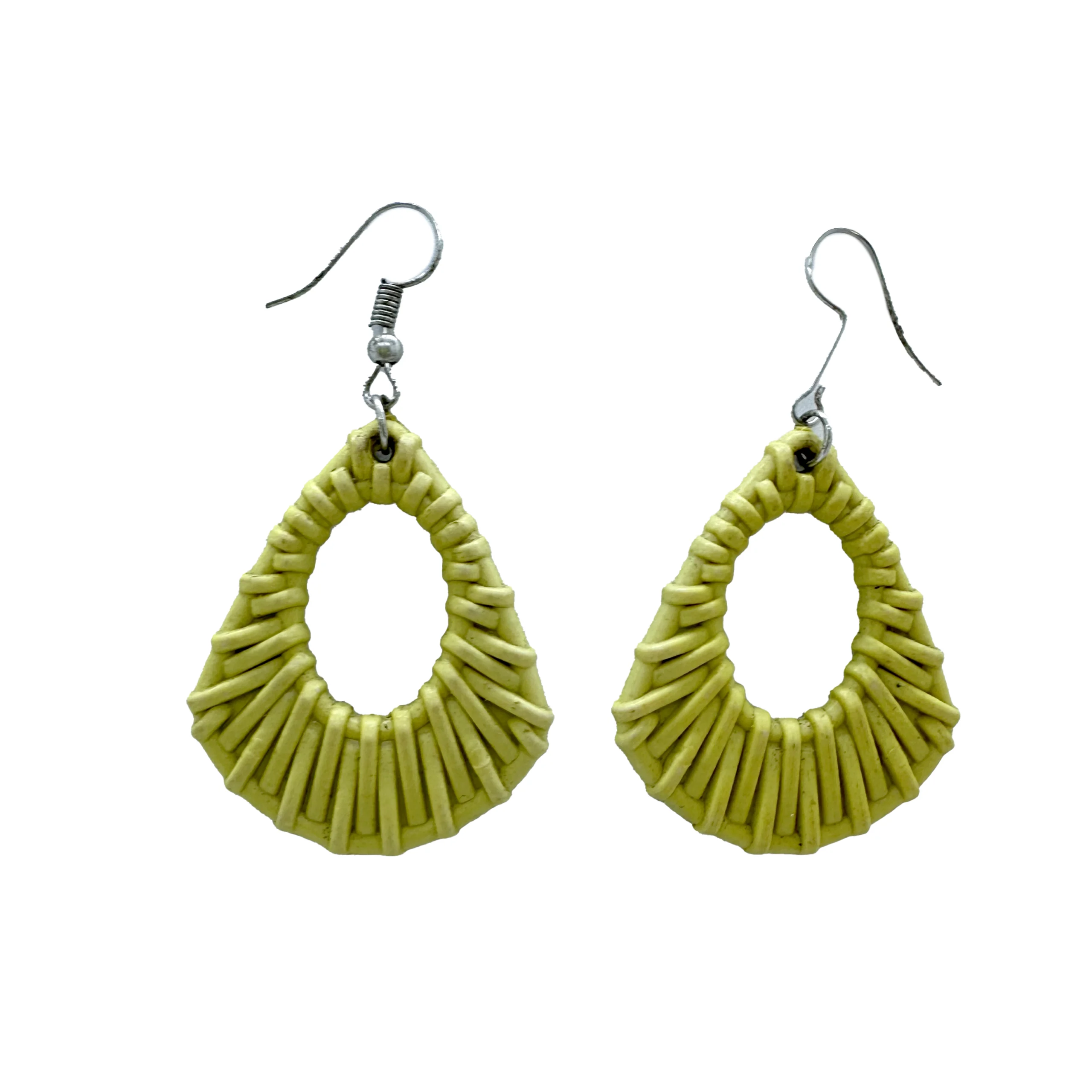 Lichtgewicht oorbellen met een open, druppelvormig ontwerp in een zachte mosterdgele tint.